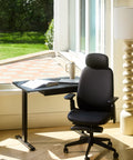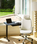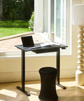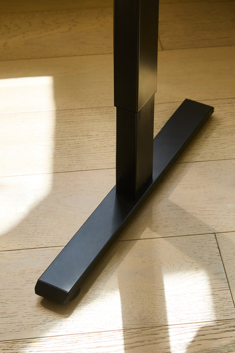 The AnyDesk Hub is a space-efficient electric standing desk designed for compact living. It features a built-in drawer, integrated cable management, a smooth vinyl surface, and softly rounded edges, ideal for creating a sleek workstation in an urban home.