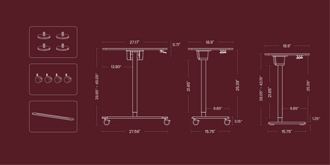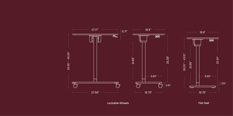- Lift Range : 29.95"-45.05" (Locking Casters) / 28.54" - 43.15" (Fix Feet)