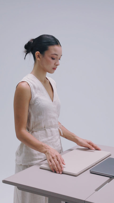 Elevate your screen to the optimal eye level, the Origamiie SlimFold Desk helps prevent neck strain - whether you’re working at a desk or on your laptop. It folds flat for on-the-go use, yet remains super sturdy to support your hands while typing, as well as heavier items like monitors and printers.